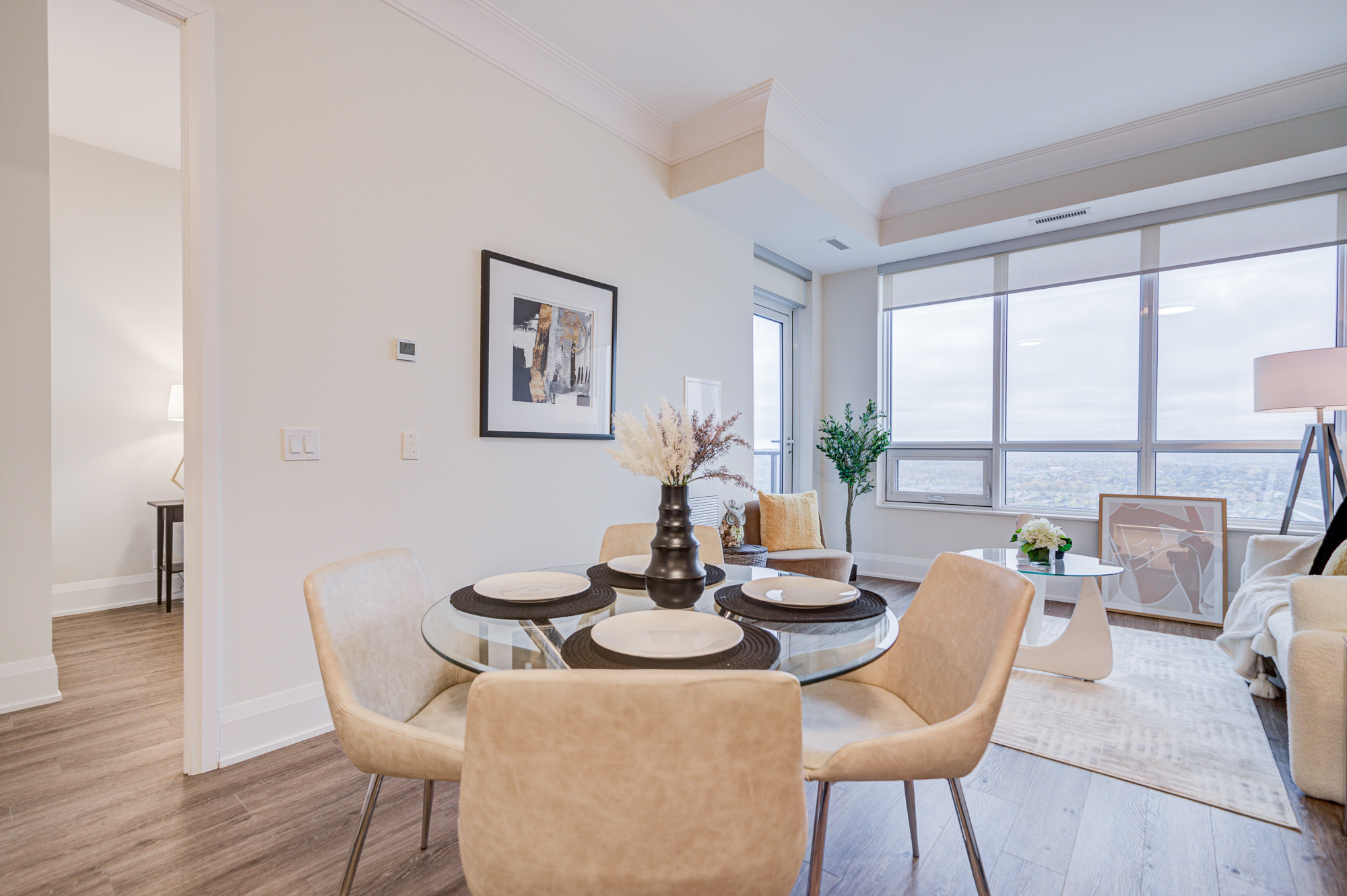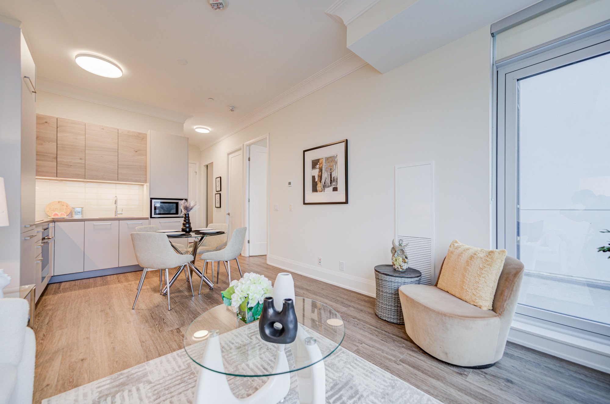 Pavilia Tower located at the prime intersection of Highway 7 and South Park Rd in Markham. This High Floor bright and spacious 1+1 bedroom unit with unobstructed view of the Richmond Hill, 10' ceilings, and a functional open-concept layout. The den, with a sliding frosted glass door, can be used as a second bedroom or private office. Enjoy modern finishes including laminate flooring, upgraded quartz kitchen countertops with matching backsplash, and a quartz vanity in the bathroom. Conveniently close to Viva Transit, Highways 407 and 404, and steps to restaurants, banks, and shopping plazas. Includes one parking space and one locker.
